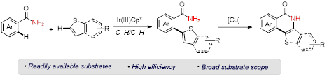 10. Guangying Tan, Chunhao Ran and Jingsong You*, Iridium-Catalyzed Oxidative Ar–H/Ar–H Cross-Coupling of Primary Benzamides with Thiophenes. Org. Chem. Front. 2018, 5, 2930–2933.
