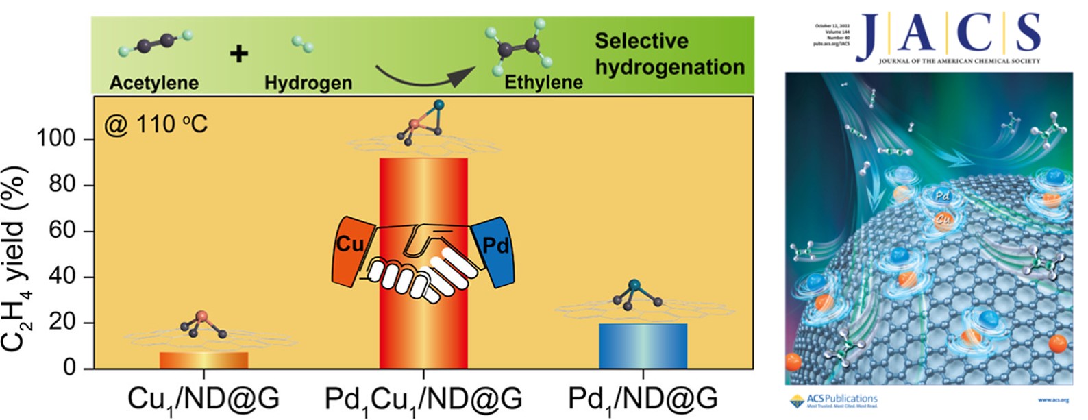 2. Huang F., Peng M., Chen Y. L., Cai X. B., Qin X. T., Wang N., Xiao D. Q., Jin L., Wang G. Q., Wen X.-D., Liu H.*, Ma D.* Low-Temperature Acetylene Semi-Hydrogenation over the Pd1-Cu1 Dual-Atom Catalyst. J. Am. Chem. Soc. 2022, 144(40), 18485-18493. (featured on the cover)