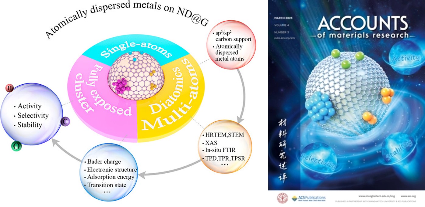 1. Huang F., Peng M., Liu H. Y.*, Ma D.* Atomically Dispersed Metals on Nanodiamond-Derived Hybrid Materials for Heterogeneous Catalysis. Acc. Mater. Res., 2023, 4(3): 223-236. (featured on the cover)