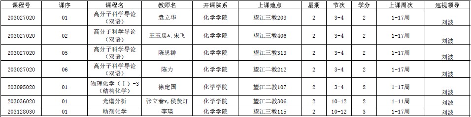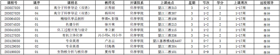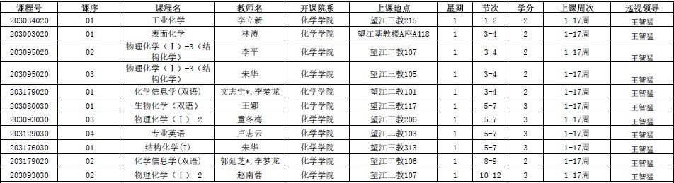 新学期伊始,学院王智猛书记、谢均副书记、郑成斌副院长、刘波副院长、李坤副院长、杨成主任分别对江安、望江两个校区2019年秋季学期9月2—4日38门次课程进行了交叉巡查(后附具体安排)。巡视教师会预留时间在课前和课后与任课教师、学生交流上课情况,积极听取师生的建议,对师生反应的问题给予及时的反馈。
