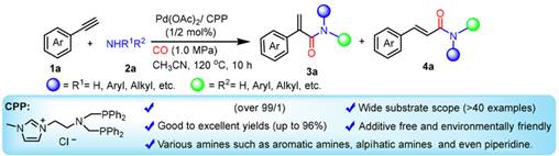 Highly selective and additive-free Pd(OAc)2/CPP catalyzed hydroaminocarbonylation of alkynes, Org. Biomol. Chem. 2024, 22, 5534-5539.