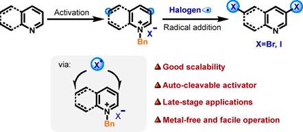 Radical meta-C-H Halogenation of azines via N-benzyl activation strategy, Org. Lett. 2024, 26, 5899-5904.