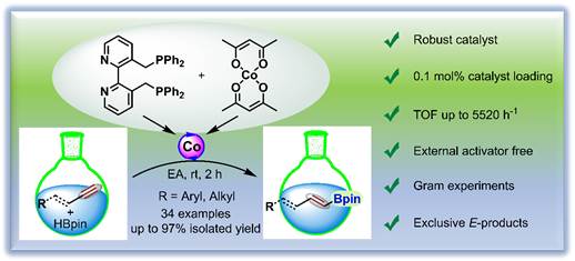Efficient and selective external activator-free cobalt catalyst for hydroboration of terminal alkynes enabled by BiPyPhos, Org. Biomol. Chem. 2024, 22, 4455-4460.