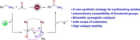 A new facet of amide synthesis by tandem acceptorless dehydrogenation of amines and oxygen transfer of DMSO, J. Catal. 2023, 417, 153-163.