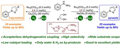 Ruthenium-Catalyzed Divergent Acceptorless Dehydrogenative Coupling of 1,3-Diols with Arylhydrazines: Synthesis of Pyrazoles and 2‑Pyrazolines, Org. Lett. 2022, 24, 3878-3883.