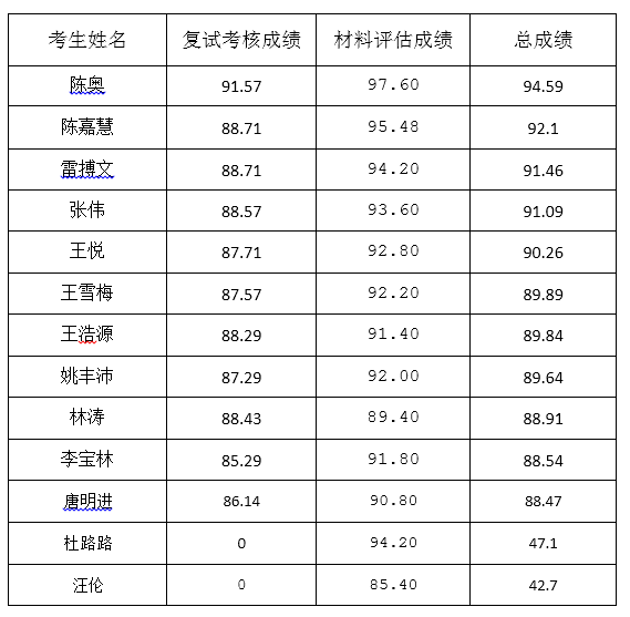 二、拟录取名单公示