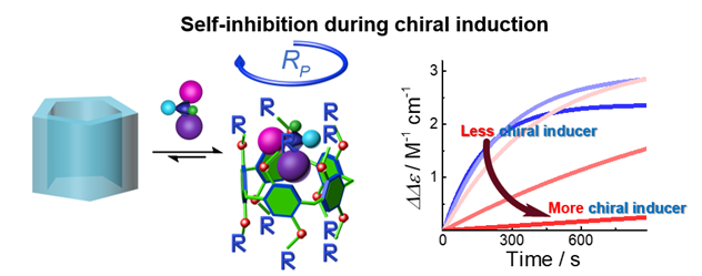 分子动力学与反应物浓度直接相关,一般情况下反应速度随反应物浓度的增加而增加。另一方面,由于生物大分子的精细结构和功能,酶反应的自我抑制在生物调控中是必不可少的。然而,自抑制在人工物理化学系统中很少被观察到,建立一个具有可控自抑制特性的人工分子/超分子系统是一个挑战,但无疑是构建具有高级自调节功能的分子/超分子系统的必要条件。近日,77779193永利官网杨成/伍晚花课题组在J. Am. Chem. Soc.期刊上发表了题为“The More the Slower: Self-Inhibition in Supramolecular Chirality Induction, Memory, Erasure, and Reversion”的论文,报导了在超分子手性诱导、记忆、擦除和逆转过程中,柱五芳烃(柱[5])衍生物表现出的一个前所未有的自抑制现象(图1)。