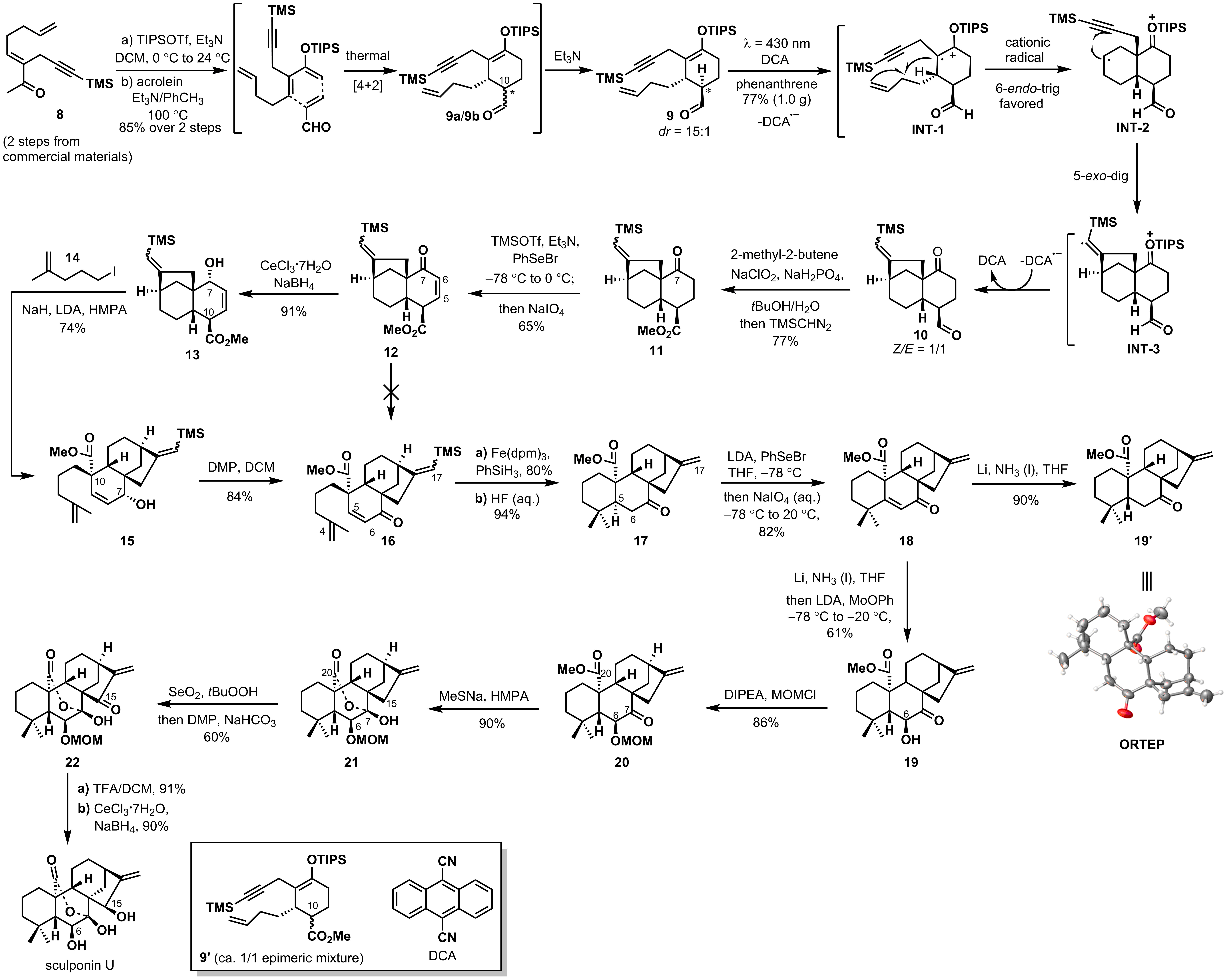 图1基于烯醇硅醚光诱导串联环化的C20-氧化的对映-贝壳杉烷型二萜全合成