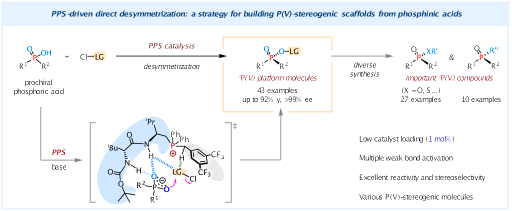 图1. 仿生手性肽季鏻盐催化次磷酸去对称化构建P(V)手性分子