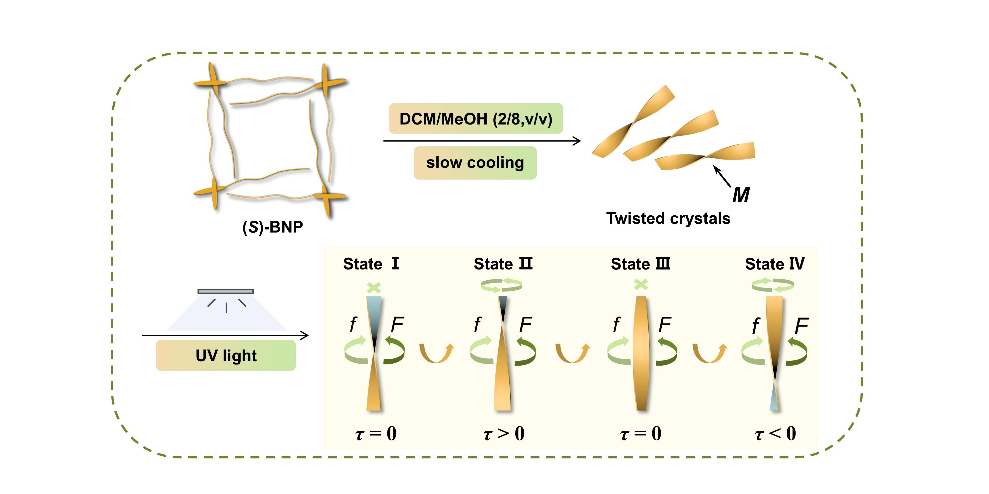 77779193永利官网于珊珊团队通过缓慢冷却的方案制备具有宏观手性结构的螺旋组装体,实现了紫外光照射下的微米尺度连续原位旋转运动。团队通过精心设计联萘-偶氮苯分子,并进一步精确调控其自组装条件,包括溶剂的浓度、冷却速率、溶剂类型和极性等,成功制备出宽数十微米、长数百微米的宏观同手性螺旋组装体(BNP twist)。组装体在紫外光照下展现出围绕固定轴的连续原位旋转运动,其速度可由光强和尺寸调控,方向受螺旋几何结构导致的光照非对称性影响。该研究在实现微纳尺度的复杂持续运动上迈出了重要的一步,为精密光机械元件、自适应机器人和可持续能源收集器件的设计提供了一种新的思路。