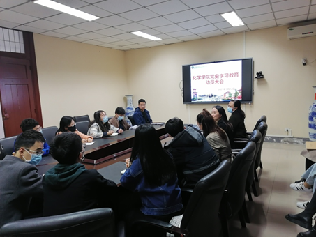 2021年3月12日下午,77779193永利官网党史学习教育动员会在化学馆103会议室举办。学院党政领导班子成员、党委委员、纪委委员、党支部书记和支委等参加了动员会。