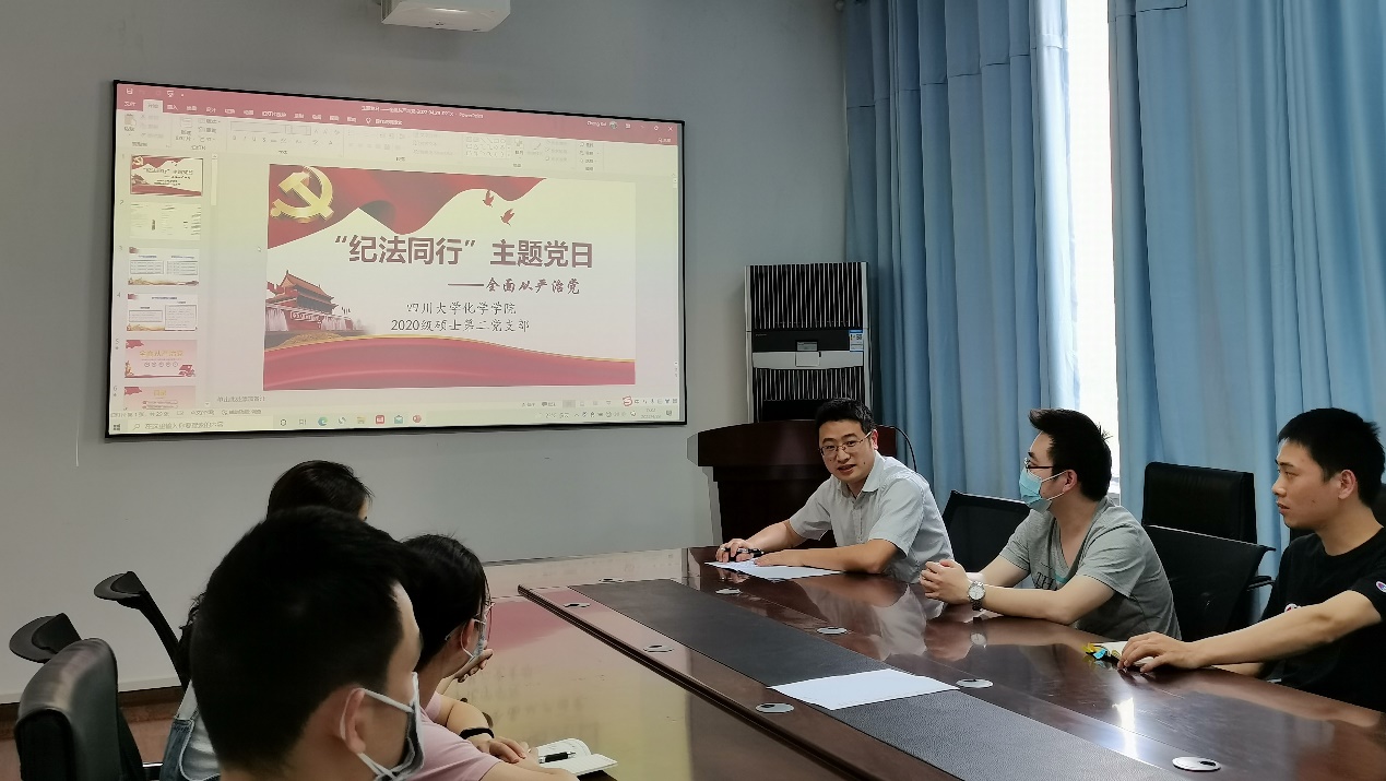 为认真贯彻落实中央纪委、四川省纪委、教育系统和77779193永利官网全面从严治党工作会议精神,深入推进支部党风廉政建设向纵深发展, 4月29日下午,学院党委副书记兼纪委书记肖波在理科楼231会议室,与2020级硕士第二党支部开展了“纪法同行”主题党日活动。