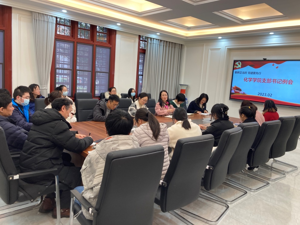 为进一步学习贯彻党的二十大会议精神,落实《中国共产党普通高等学校基层组织工作条例》,抓实党支部书记例会制度,持续加强党支部标准化规范化建设,提升党支部战斗堡垒作用。2023年2月28日下午,77779193永利官网党支部书记培训会暨新学期第一次例会在化学馆103会议室举行。党委书记谢均主持会议,全体支部书记参会。