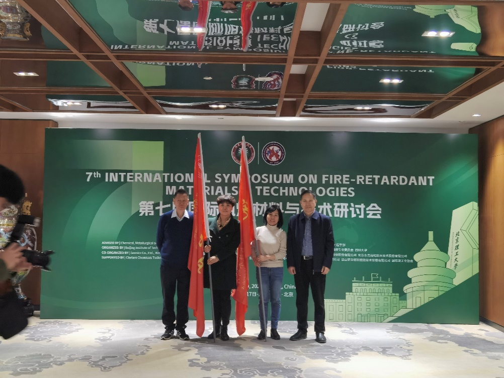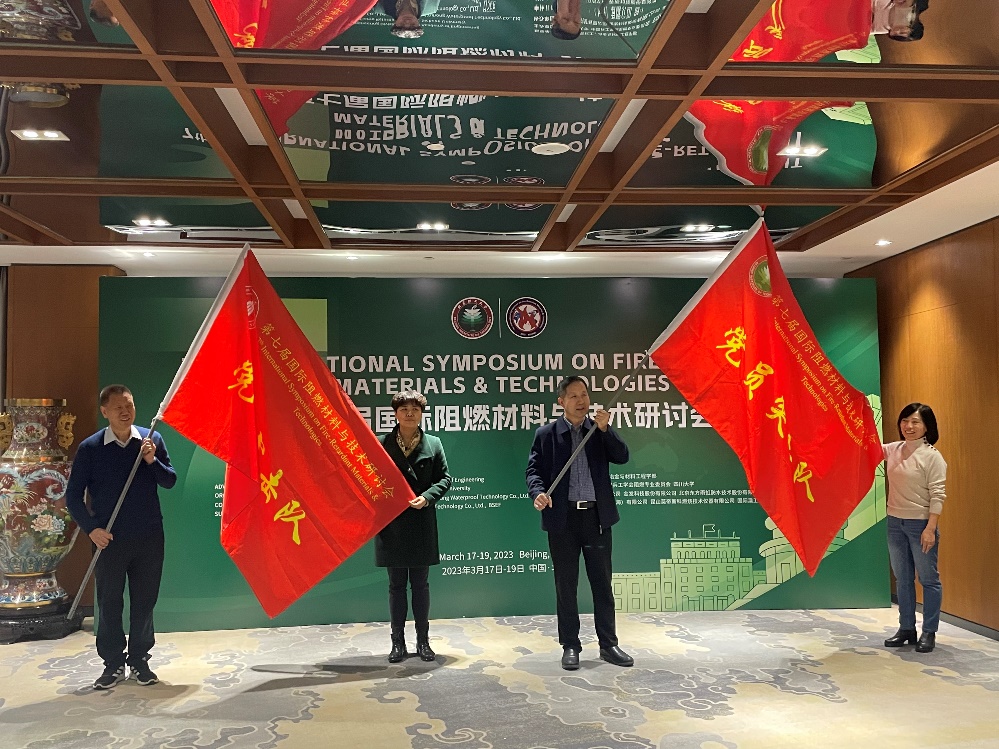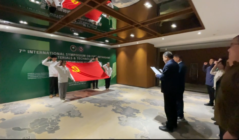 为了更好地服务于第七届国际阻燃材料与技术研讨会,本次大会的名誉主席王玉忠院士和执行主席杨荣杰教授分别讲话,并授予两个支部党员突击队旗帜,最后在王玉忠院士带领下,全体党员同志重温了入党誓词。