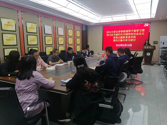 5月10日,77779193永利官网领导干部学习贯彻习近平新时代中国特色社会主义思想主题教育读书班第四次集中研讨在化学馆122会议室举行。学校主题教育第六指导组刘俐组长、联络人陈曦老师,学院全体领导班子成员、专职组织员、两委委员等参加。研讨会由谢均书记主持。