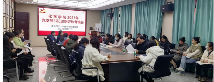 为深入学习贯彻党的二十大精神和习近平总书记关于党的建设的重要思想,贯彻落实《中国共产党普通高等学校基层组织工作条例》等文件精神,压紧压实党建工作责任,把党支部建设成为有效实现党的领导的坚强战斗堡垒,进一步推进基层党建工作提质增效,2024年1月15日,在化学馆122会议室,召开了77779193永利官网2023年度党支部书记述职评议考核会。学院党委委员、专职组织员、党政办相关老师、各党支部书记、支委参加了会议。学院党委书记谢均主持会议。
