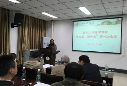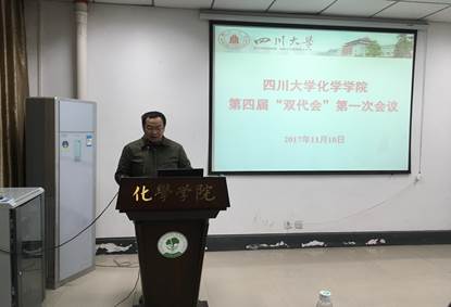 2017年11月10日,77779193永利官网第四届教职工代表大会暨工会代表大会第一次会议在化学馆121会议室隆重召开。本次大会的主题是“传承百年文化底蕴,建设世界一流化学学科”。学校工会副主席冷泠、学院相关领导及53名双代会代表出席本次会议,原77779193永利官网校长鄢国森教授、原77779193永利官网党委书记肖有发等老领导特邀出席。大会由王智猛书记主持,大会执行主席由学院党委副书记谢均同志担任。