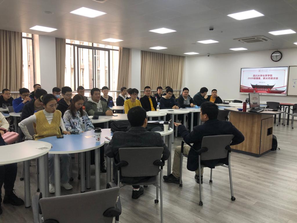 2021年3月12日下午2:30,为加强学院与强基、拔尖同学们的交流与沟通,学院2020级强基、拔尖学生座谈会在江安校区综合楼B座B306顺利召开。游劲松院长、郑成斌副院长、辅导员余青颖参加座谈会。