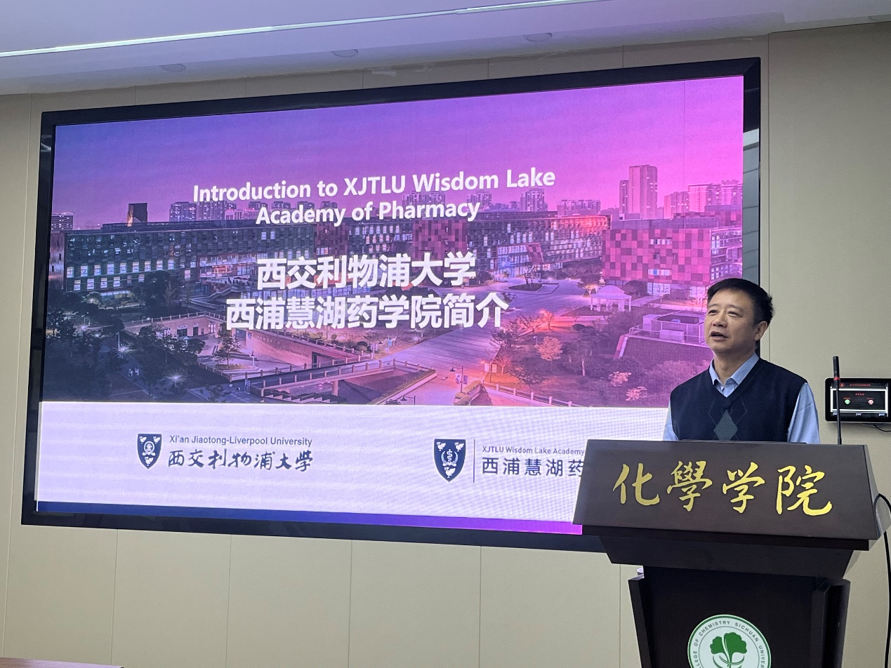 王牧教授首先对西交利物浦大学及慧湖药学院的基本情况进行了简要介绍。学院坐落于苏州工业园区,毗邻苏州生物纳米园和生物医药产业园,有500多家医药科创企业可提供广泛的就业和实习机会。学院通过政府、企业、学校三方紧密合作模式,旨在培养具备行业造诣、科研能力、实操技能、勇于开拓创新的国际化复合型药业精锐。同时就慧湖药学院的师资团队、仪器设备、地理优势、前沿科学讲堂、企业合作、深造机会等方面作了详细介绍,并向参会人员展示了西浦慧湖药学院优质的校园环境、在读学生规模和知名杰出校友。