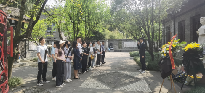 在这庄严的氛围中,全体人员在雕像前庄严肃立,大家鞠躬默哀致敬,并敬献鲜花。