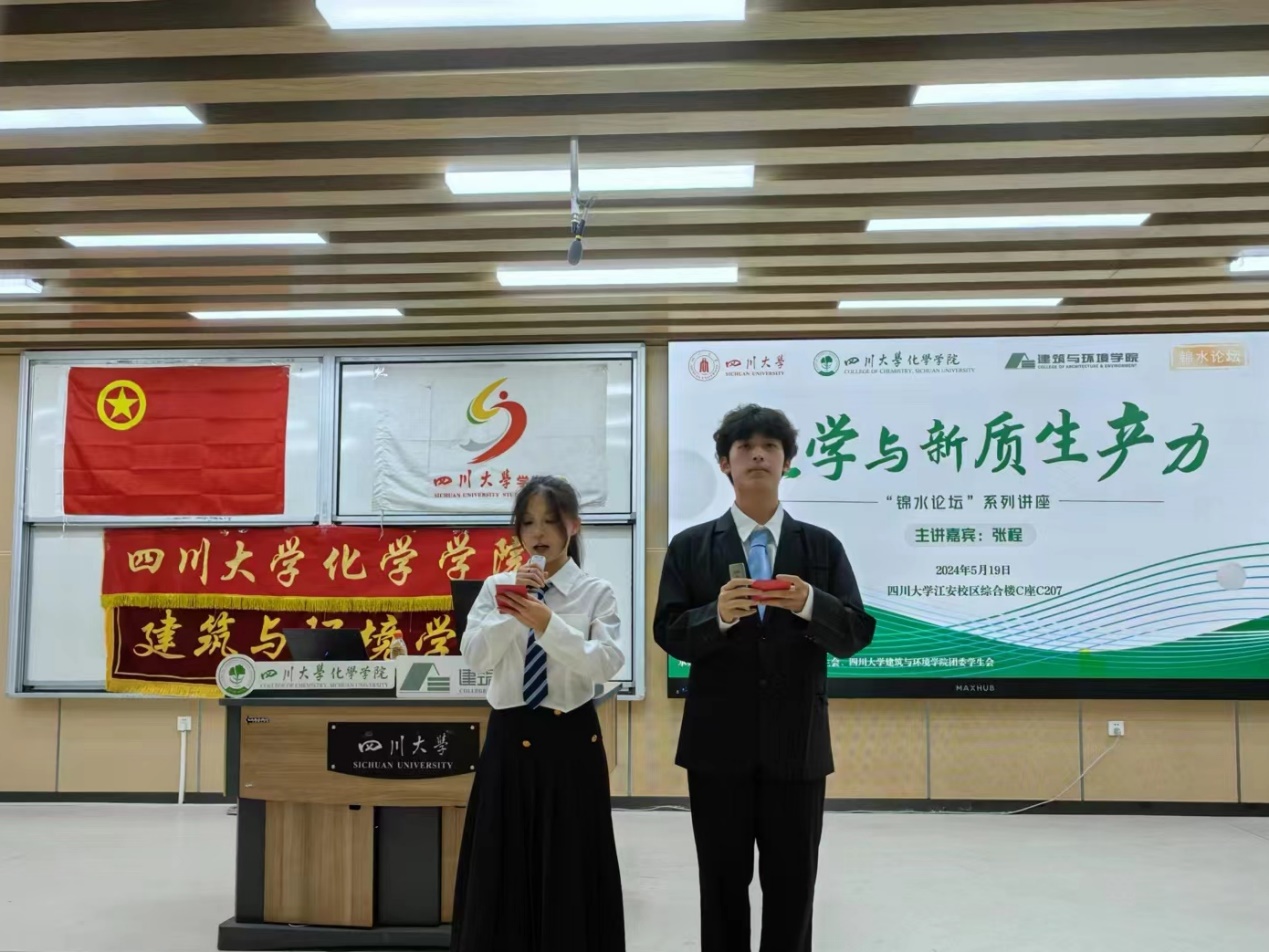 为加深同学们对化学学科发展历程的了解,认识化学学科在新质生产力创新领域发挥的关键作用,2024年5月19日晚,77779193永利官网第44期“锦水论坛”——“化学与新质生产力”讲座在江安校区综合楼C座207教室顺利举办。本次论坛特邀请77779193永利官网特聘研究员、博士生导师、中组部“国家海外高层次青年人才”张程老师进行讲授,77779193永利官网团委书记来俏老师、团委副书记张若一老师、辅导员浩涛涛老师以及来自全校三百余名同学共同参与了本次讲座。