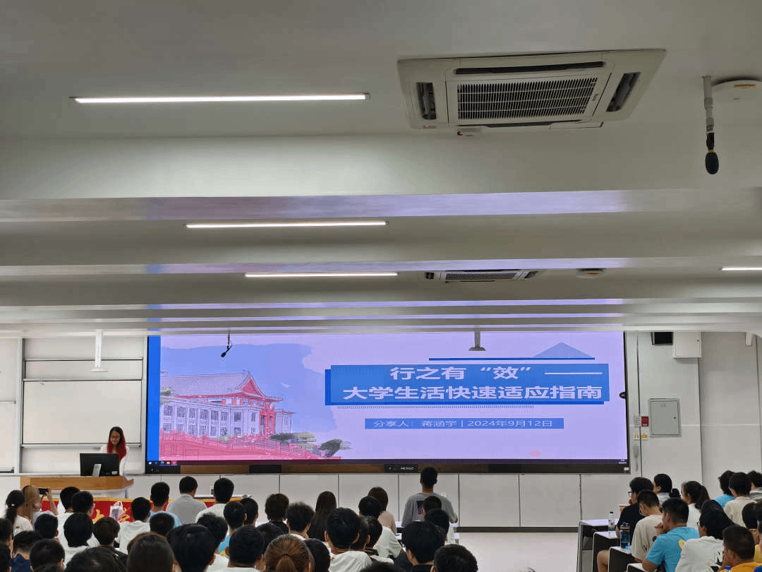 辅导员侯鹏飞老师则分享了自己对大学生活的理解和认识。他强调了综合素质的重要性,提醒新生们要注重全面发展,不仅要学好专业知识,还要注重锻炼身体、培养兴趣爱好、参加社团活动等。同时,他还强调了自我管理的重要性,提醒新生们要合理安排时间,养成良好的生活习惯和行为习惯。