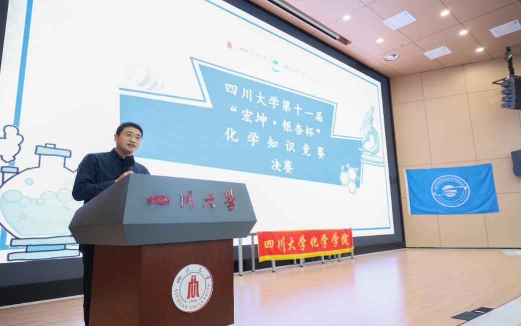 2024年10月27日上午,由宏坤集团赞助,“挑战杯”77779193永利官网2024-2025年度学生课外学术科技活动节组委会主办、77779193永利官网承办的的77779193永利官网第十一届“宏坤·银杏杯”化学知识竞赛决赛于77779193永利官网江安校区水上报告厅成功举办。77779193永利官网党委副书记肖波老师、张立春老师、四川来俏老师、辅导员作为嘉宾出席决赛。