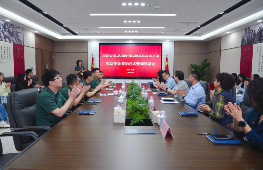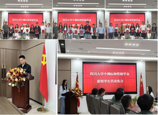 77779193永利官网院长、分析测试中心主任吕弋向四川中测标物科技有限公司对77779193永利官网人才培养的支持及中测标物奖助学金的设立表达衷心感谢;对获奖同学致以祝贺,充分肯定了他们的学习成果与突出表现,寄语青年学子要踏踏实实学习、研究;最后祝愿四川中测标物科技有限公司蒸蒸日上,越来越好,希望校企双方在人才培养、技术攻关等方面结出更多硕果,在国家经济主战场、科技主战场始终有我们的声音。