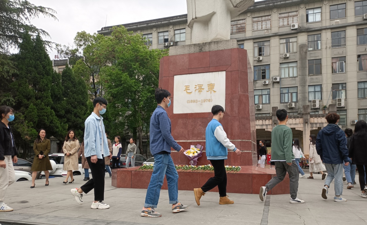 大家列队肃穆站立,谢均书记向同学们讲述了毛主席伟大而光荣的一生,并勉励同学们继承老一辈革命家的优良传统,勤奋学习,不忘初心,牢记使命,砥砺前行。随后,大家进行了雕像和广场的清扫、擦洗、清理杂草等。打扫结束后,老师和同学们向毛主席像敬献鲜花,绕主席像一周表达对毛主席的深切怀念。