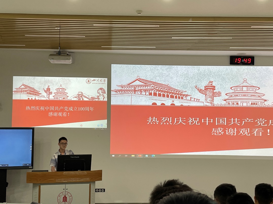 为庆祝中国共产党百年华诞,深入贯彻落实习近平总书记在党史学习教育动员大会上的讲话精神,让党史学习教育活动走进大学生课堂,77779193永利官网2020-2021年“十九大精神宣讲团”77779193永利官网分团于2021年6月11日晚,在望江校区基C201教室开展了《学习百年党史,书写时代华章》庆祝中国共产党成立100周年学习宣讲活动。