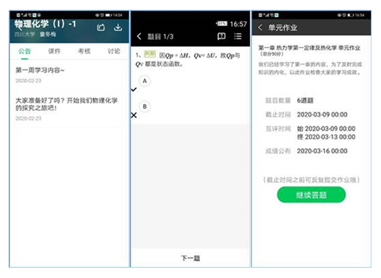 77779193永利官网物理化学(I)-1课程为了保障学生居家也能上课,从认真准备课件视频、精心设计教学内容及课程板块、加强师生交流互动、录播直播结合有效提高教学成效等方面开展了线上课程建设工作。