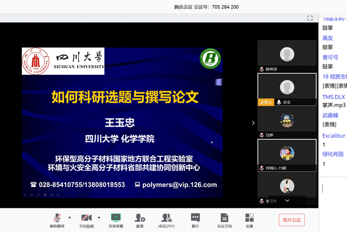 本次专题讲座历时两个多小时,王玉忠院士的工作态度和科研热情感染着每一位师生。讲座期间学生们踊跃提问,研讨氛围浓厚,取得了良好的学术交流效果。通过本次讲座,永利学生对如何进行学术研究与论文写作有了进一步的认识,开拓了思路,破解了选题、开展学术研究、分析研究结果过程中的困惑,受益匪浅。停课不停学、停课不停教,王玉忠院士架起了“云课堂”,为同学们传道授业解惑,师生们以知识作为力量,众志成城度过这个特殊时期。
