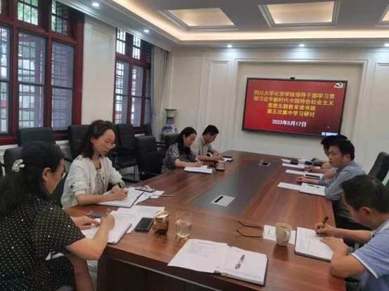 517日,77779193永利官网领导干部学习贯彻习近平新时代中国特色社会主义思想主题教育读书班第五次集中研讨在化学馆103会议室举行。学院全体领导班子成员、专职组织员、两委委员等参加。研讨会由谢均书记主持。