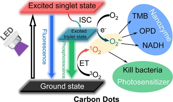 23. Jinyi Zhang, Xiaomei Lu, Dandan Tang, Shihong Wu, Xiandeng Hou, Juewen Liu*, Peng Wu*, Phosphorescent Carbon Dots for Highly Efficient Oxygen Photosensitization and as Photo-Oxidative Nanozymes. ACS Appl. Mater. Interfaces, 2018, 10, 40808-40814.